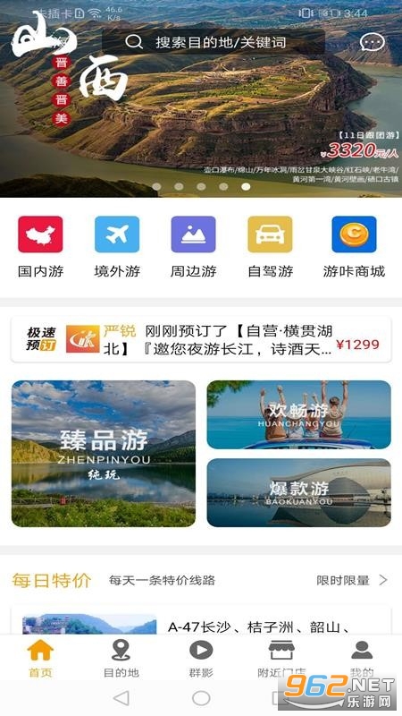 《游咔旅游安卓版》是一款非常给力好用的手机旅游应用软件,这款软件的操作和安装方法都非常简单,提供了各种旅游产品,汇聚了国内游、境外游、周边游、自驾游等等,可以根据你的需求来进行定制,感兴趣的朋友欢迎来962下载吧!