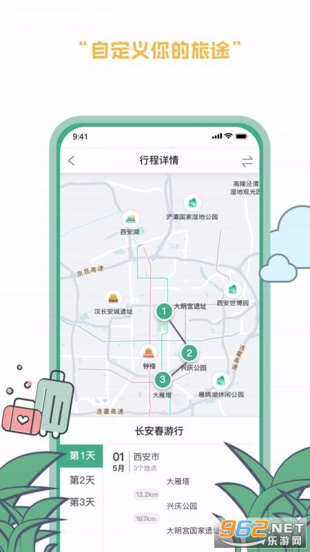 1、用户可以根据自己起始点定制旅游路线,支持自由规划设计旅游路线,还有酒店、景点门票预定。