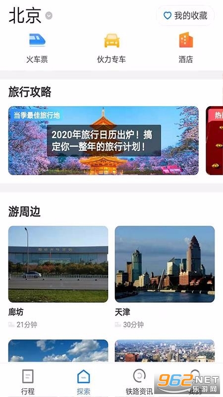 《铁路旅游官方版》是一款非常给力的铁路出游服务的软件,为广大用户提供旅游攻略、酒店预订、行程安排等一系列的服务,非常全面实用,操作也方便,门槛低,所有用户都可以使用,感兴趣的朋友还在等什么?欢迎来962下载体验试试吧!