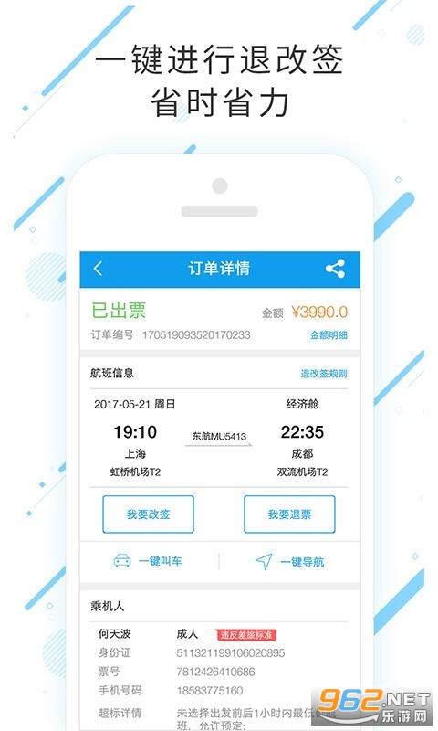 一键进行退改签,省时省力