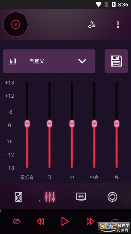 均衡器和低音增强器由音量增益滑块,低音增强器,虚拟3D环绕音和五个波段均衡器等组成。