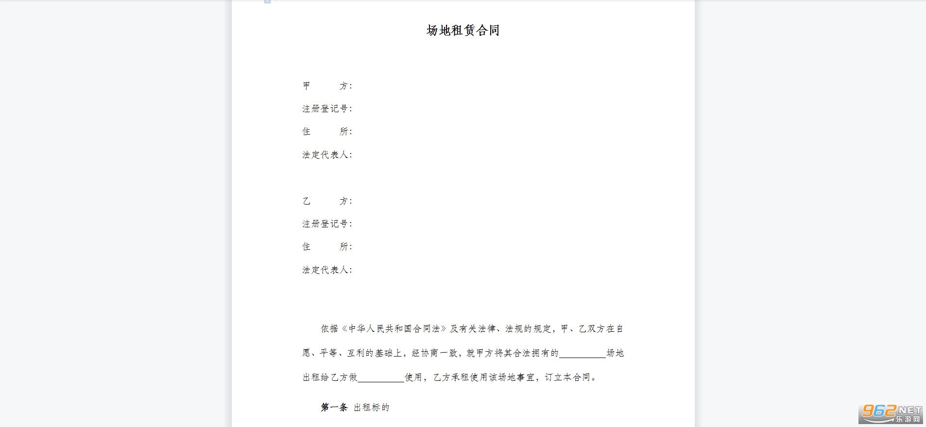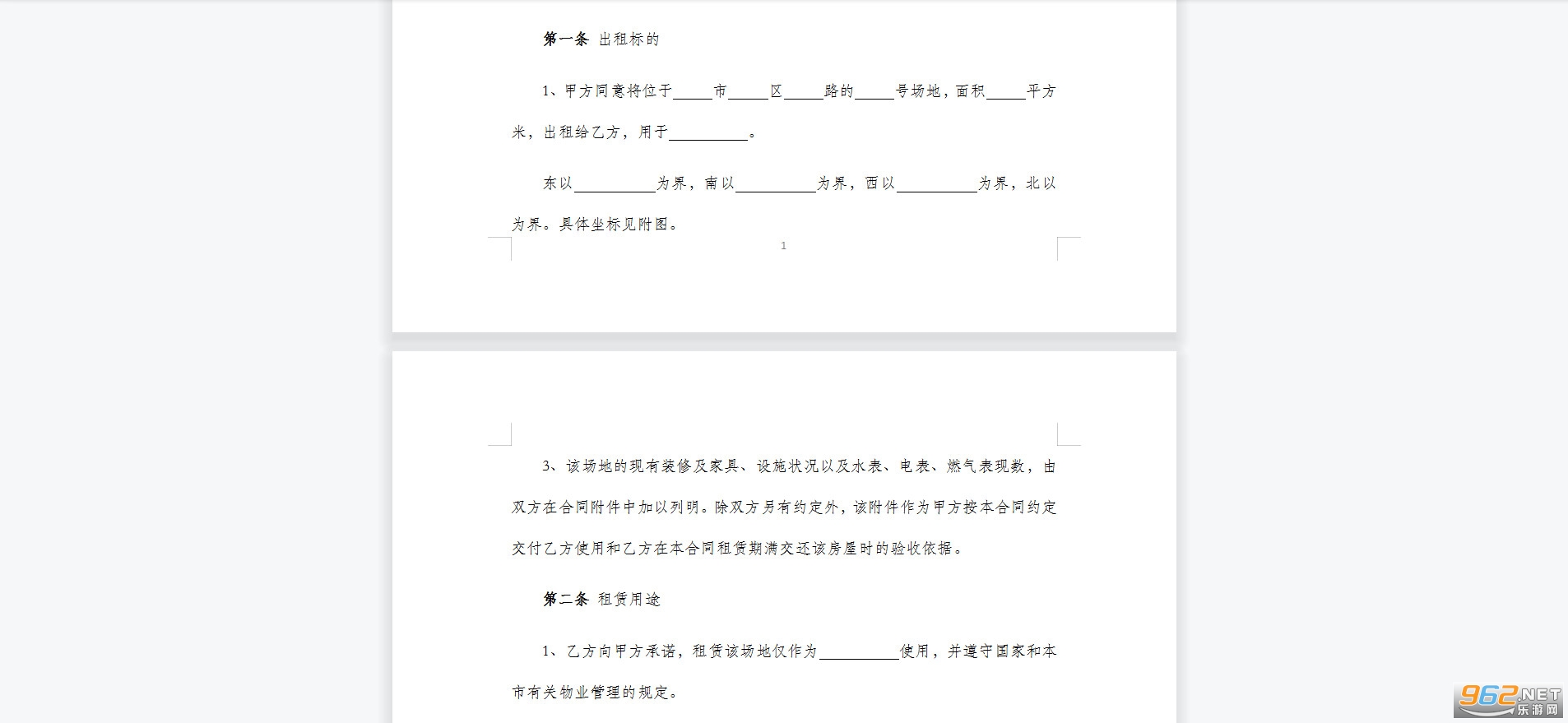 1、甲方同意将位于 市 区 路的 号场地,面积 平方米,出租给乙方,用于 。