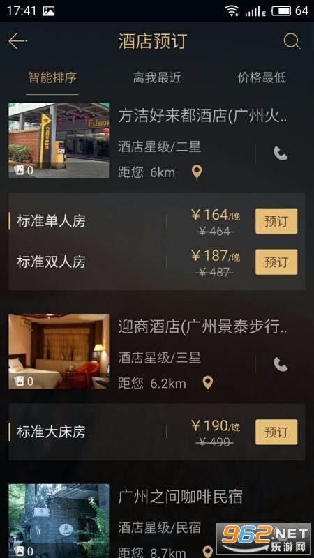6、支持智能排序所有的酒店,按照星级、评价、距离、价格等为你进行排序;