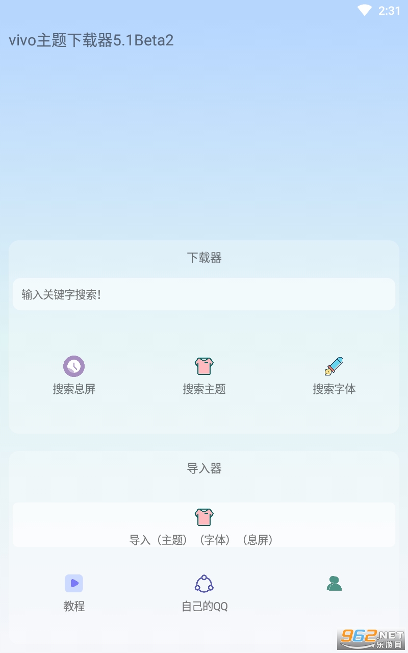 这是一款非常不错的可以很好的下载以及导入vivo主题的工具,包含了主题以及息屏还有字体的选择,直接搜索关键词下载即可,十分的丰富哦,喜欢的亲们赶紧下载吧。