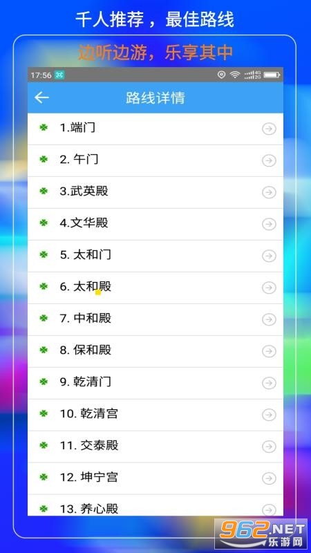 3、提供推荐路线,,不用自己设计旅游攻略,跟着它,教你如何游览故宫;
