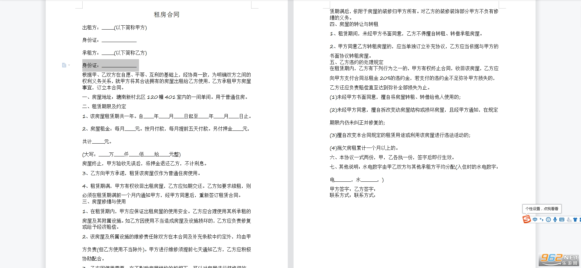 《个人租房合同简单版》是日常生活中大家可能用的比较多的一项合同协议文件,签订住房合同的目的是有效的保证承租方和出租方之间的合法权益和利益,因此在租房的过程中必不可少,小编为大家整理一些免费的个人租房合同简单版,大家可以自由的借鉴使用!