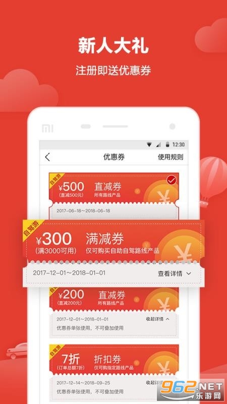 App、官网、等自主一键下单:自由选择线路、时长、车型、酒店、景点、装备等,随时出发。