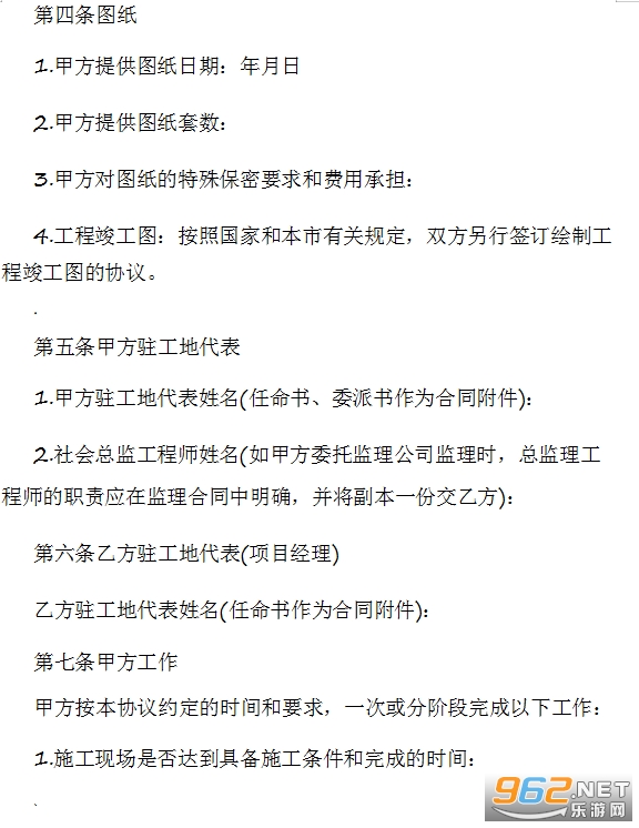 4.开工日期(双方约定的符合开工报告规定的具体日期,以单位工程为准;群体工程以第一个开工的工程为准):本合同工程定于年月日开工。竣工日期(以单位工程为准;群体工程以最后竣工的工期为准):本合同工程定于年月日竣工。