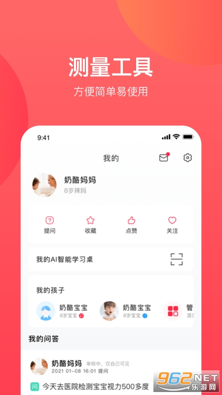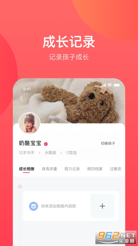 这是一款专为6-18岁青少儿父母量身定制、共同守护儿童健康成长的APP。APP内提供专业的青少儿健康成长知识分享,并新增AI智能预测、云相册、近视 & 驼背测试等成长健康记录工具。在线上传孩子成长关键期的独家照片,和4亿家长一起云见证孩子的成长变化的每一步!