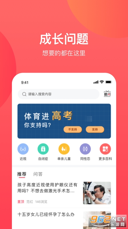 康贝贝成长app是一个6-18岁青少儿健康成长平台。康贝贝成长app提供视力检查、驼背检查、成长记录等工具,还有育儿百科知识,呵护青少年成长。