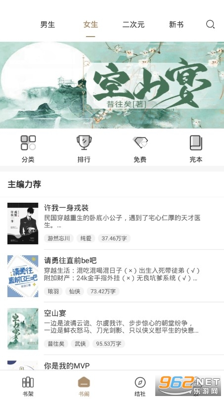 九怀读书免费小说是一款真正免费的小说阅读软件,海量小说分类齐全,玄幻,武侠,都市,言情等各种题材的小说都有,能够满足你多元化的阅读需求,在九怀读书各种连载小说实时更新,精彩内容抢先进行阅读,九怀读书还有各种小说榜单为你推荐更多精彩的小说,让你从此不再书荒,有需要的用户赶紧来下载吧。