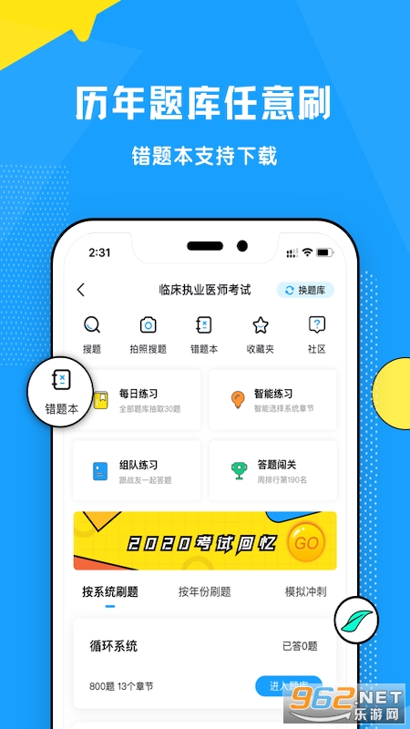 同时为临床执业医师考试、医学考研的用户提供了完整且免费的题库,专业的刷题工具,大量的考试资料和海量的用户产生的考试经验;