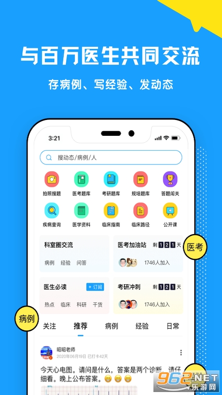 1.记病例,写经验,学习打卡,记录工作学习日常。已累计海量病例,临床经验,考试经验。