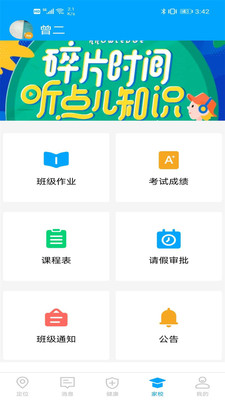 该软件是是一款关注儿童安全,以及能够实时观察儿童上学情况的软件,主要功能有,定位,电子围栏,历史记录,学生请假,查看学生成绩,学校公告,查看课程表等功能。