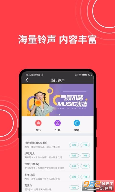 3、拥有超多精选的优质来电背景、来电铃声和视频彩铃资源,内容丰富并且类型齐全;