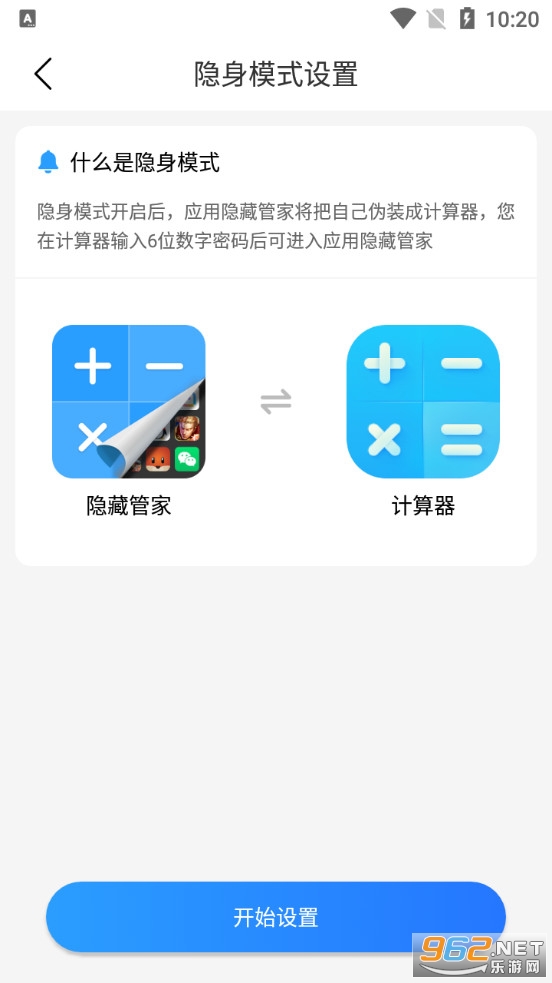 应用隐藏双开支持隐藏应用、隐藏游戏。您可以将您不愿意其他人看到的应用游戏放到隐藏管家里,在您需要时才显示出来;同时应用隐藏管家可以将自己伪装成计算器,在计算器中输入相应的数字安全码后进入隐藏空间,实现彻底隐藏;您也可以将私密照片放到隐藏相册中实现隐藏照片;