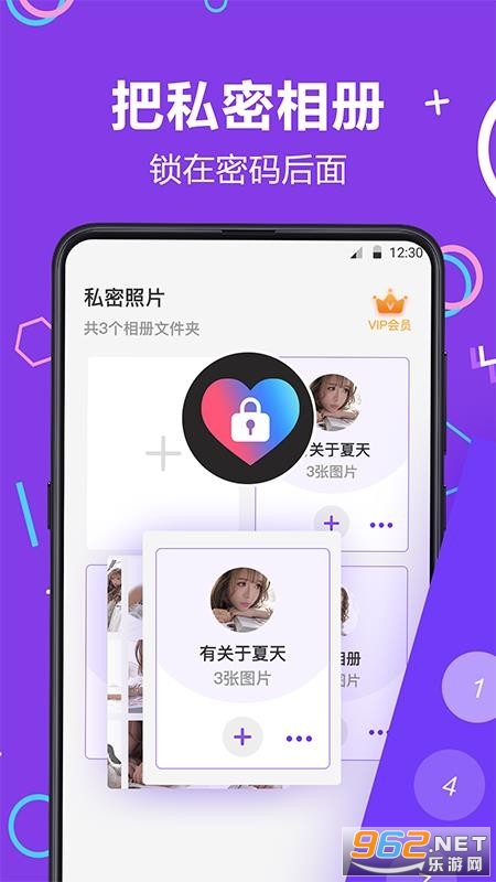《照片加密官方版》是一款非常给力的相册加密工具,该应用为用户提供了专业的相册加密功能,让用户更加安全的保护自己的隐私相册,不会轻易被他人窥视,操作也简单,也是免费的,感兴趣的小伙伴还在等什么?欢迎来962下载体验试试吧!