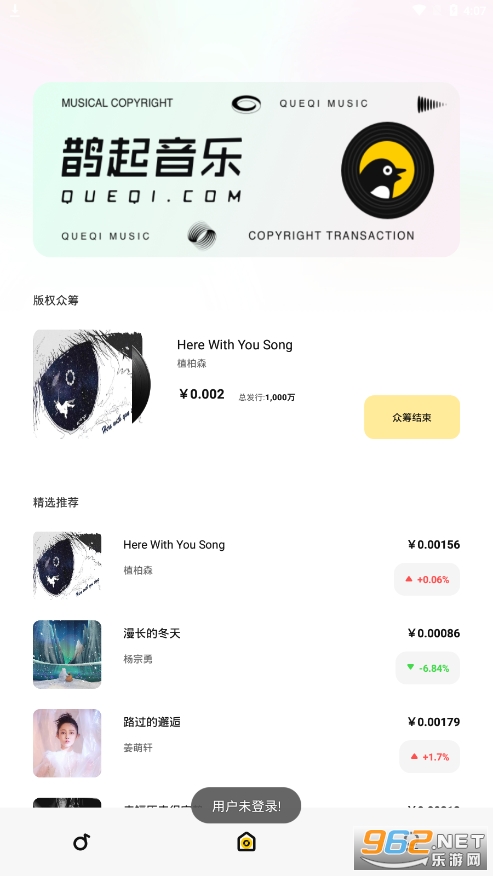 鹊起音乐平台会不定期进行新歌首发,用户可在首页版权众筹中参与认购。