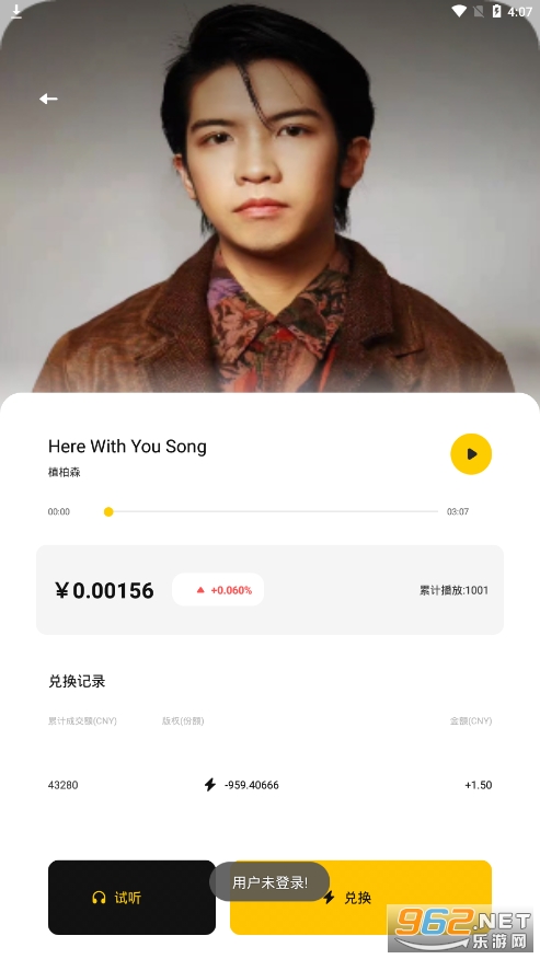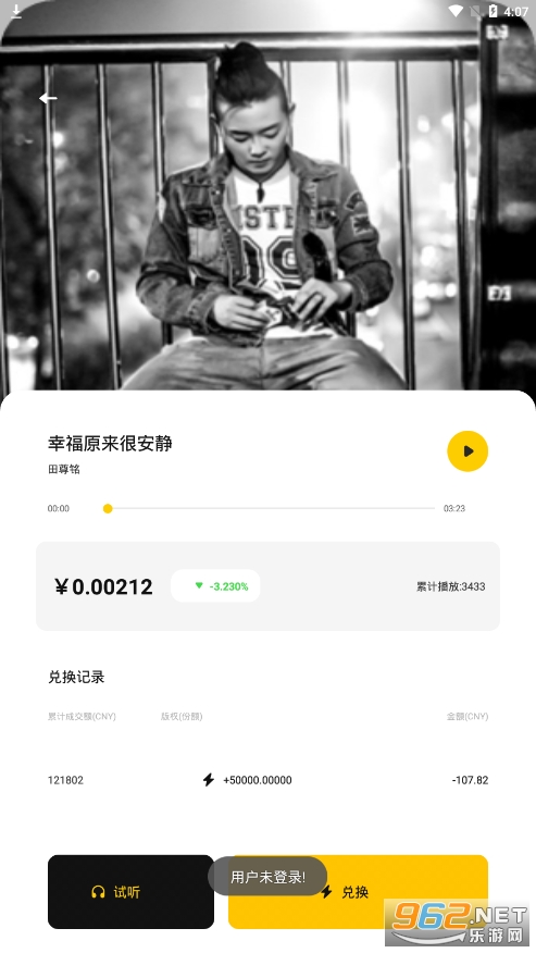 用户可在音乐播放页面进行兑换音乐版权份额,持有版权份额不仅享有永久收听权,还可以将手里的版权份额兑换资产,坐享升值空间。