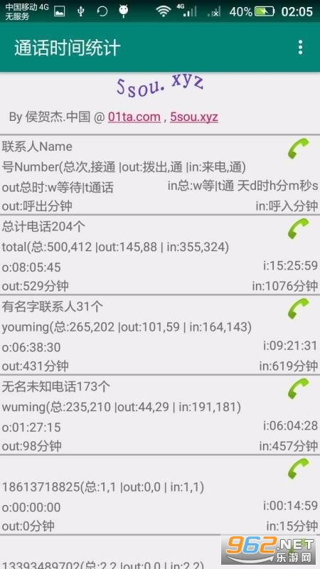 《通话时间统计app》是一款非常给力的通话时间记录软件,这款软件的操作和安装方法都非常简单,通话时间统计软件可以统计用户一段时间内的通话时间,用户可以清楚地知道跟某人总共通了多长时间电话,跟谁通话最久等信息。感兴趣欢迎来962下载试试吧!