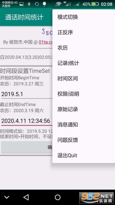 本程序用于通话记录时间、时长、周几、日期、农历等显示,并有分号、分段统计、通话备注、标级等功能.