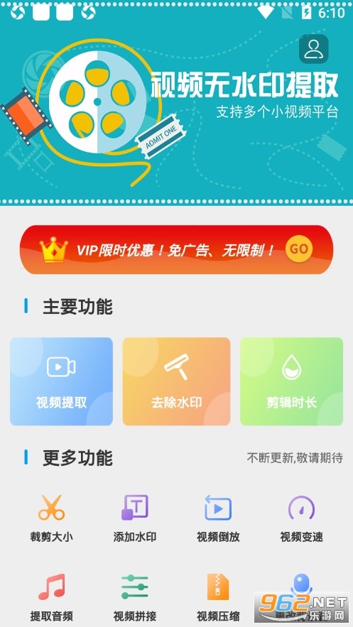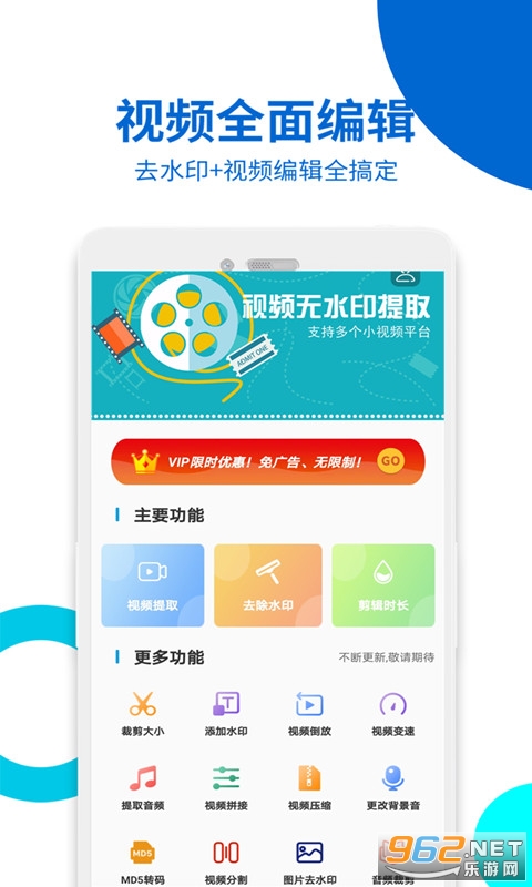《视频无痕去水印安卓版》是一款非常给力的视频去水印软件,在这里提供有提取功能,可以在热门短视频平台提取无水印视频,实时将视频进行剪辑,而且不需要任何费用,操作也简单,感兴趣的朋友还在等什么?欢迎来962下载吧!