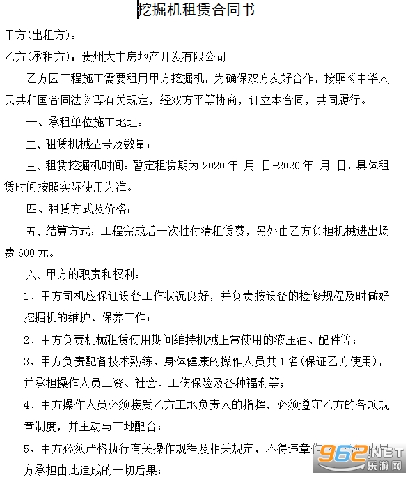 乙方因工程施工需要租用甲方挖掘机,为确保双方友好合作,按照《中华人民共和国合同法》等有关规定,经双方平等协商,订立本合同,共同履行。