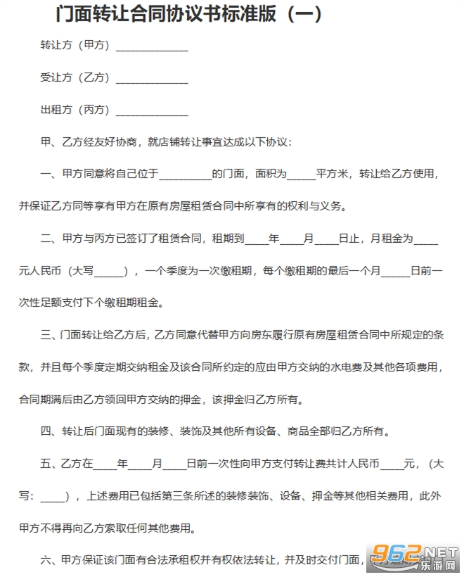 门面转让合同协议书电子档