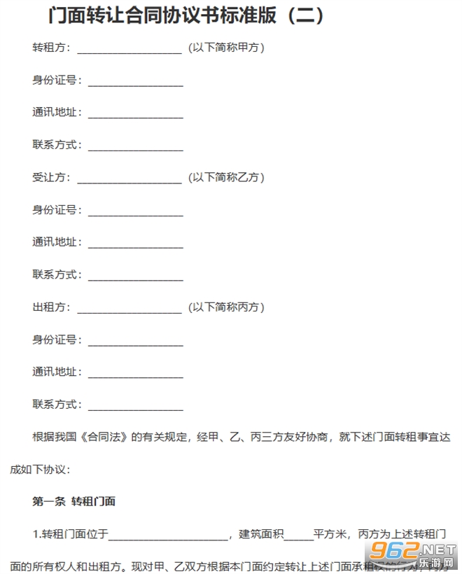 门面转让合同协议书怎么写?门面转让时必须要签订正对的门面转让合同协议书用以保障多方权益。下面为大家带来2份正式的《门面转让合同协议书》,都是比较简单的范本,大家可以根据自己的具体情况进行修改。直接下载解压安装包就能够免费得到门面转让合同协议书标准版电子档文档了哦!