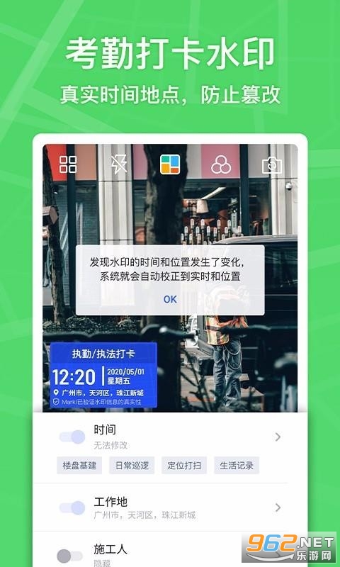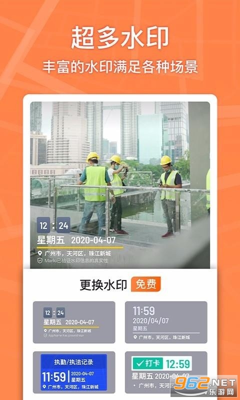 1、打卡水印丰富,涵盖天气,时间,位置,经纬度,海拔高度,真正还原工作或生活场景。