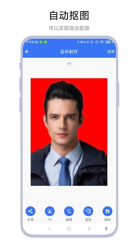 3、自动抠图换底:运用智能抠图技术,自动识别人物主体并与背景分离,实现一键更换多种标准背景底色。