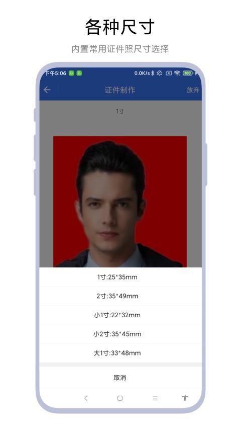 1、尺寸规格齐全:应用支持一寸、二寸、小一寸等多种常用证件照尺寸制作,能够满足各类考试、签证、入职等场景的需求。