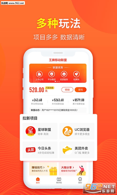 【丰富的拉新项目】多个拉新项目,大平台可信赖佣金多。