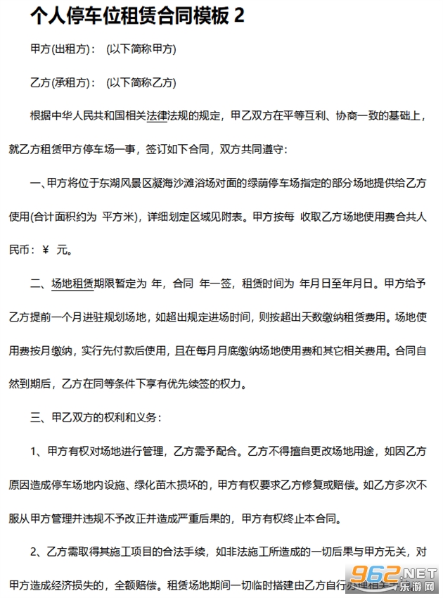 根据中华人民共和国相关法律法规的规定,甲乙双方在平等互利、协商一致的基础上,就乙方租赁甲方停车场一事,签订如下合同,双方共同遵守: