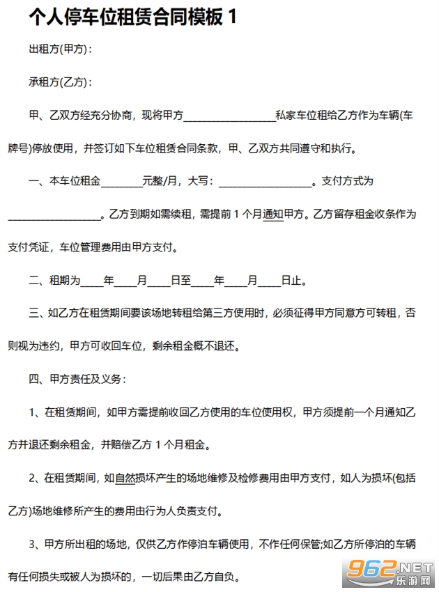 三、如乙方在租赁期间要该场地转租给第三方使用时,必须征得甲方同意方可转租,否则视为违约,甲方可收回车位,剩余租金概不退还。