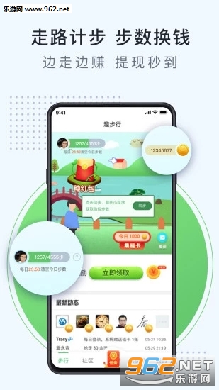 1、使用App中计步器记录走路步数,即可按照步数折算成现金红包。