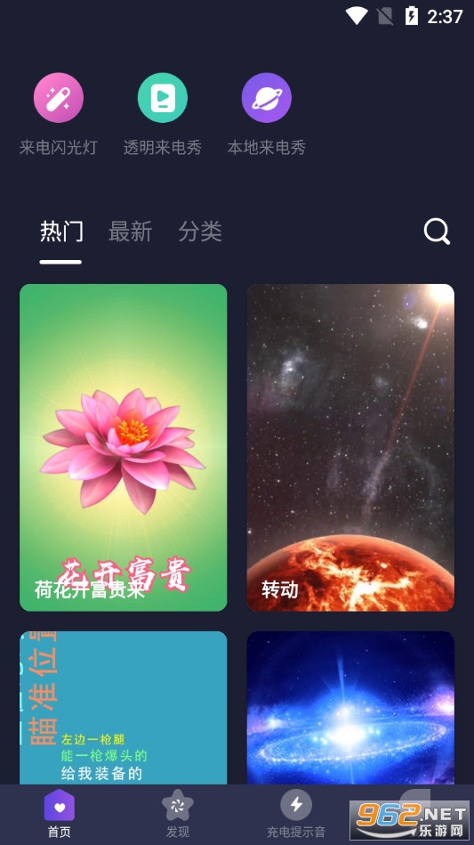 《充电提示音来电秀app》是南京陶陶网络科技有限公司推出的一款带有充电提示音与炫酷来电显示的软件,朋友们可以使用本款软件来设置不同的充电提示,比如插入插头、拔掉插头、电充满等都可以进行提示,软件还带有丰富的来显显示特效,可以自定义自己的来电显示。