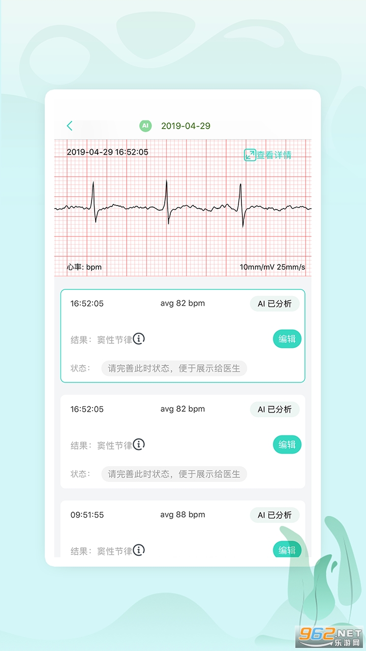 AI-ECG人工智能自动分析,马上知晓心电分析结果,还可查看结果建议。