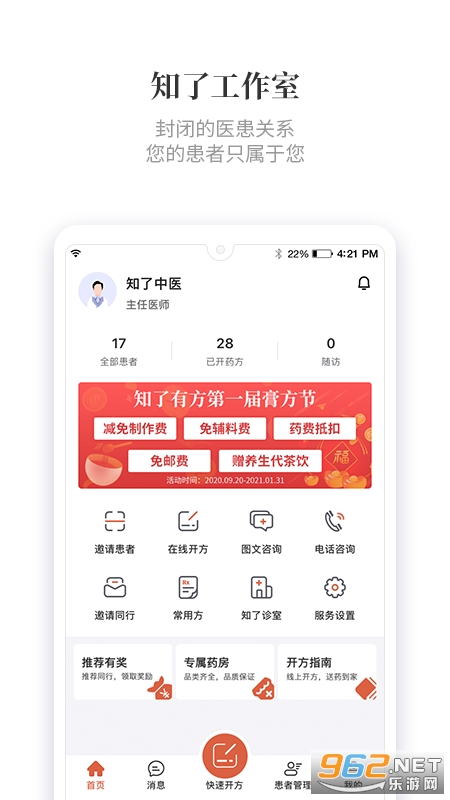 《知了有方医生版》给大家带来了一款优质的医疗学习平台,医生们可以在这款知了有方app中管理患者信息,随时随地在线上为患者提供资讯服务。患者信息方便保存,打造出一款优质的中医医疗平台!