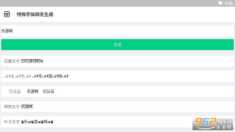 特殊昵称制作app是一款非常好用的网名制作工具,有些输入法打不出来的字都可以在这里快速生成,并且还可以加入各种有趣的符号,各种人气昵称都有,不管是情侣还是家人好友都可以取到特别的昵称,重名率更低,更有个人意义。