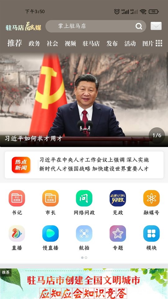 专业的新闻阅读应用,是由驻马店广播电视台打造的新闻客户端,旨在为本地人推送新闻资讯信息,喜欢阅读新闻的人可以在手机上一览每日的新闻时事,可以挑选自己感兴趣的新闻版块进行阅读,这里的新闻频道丰富多样,涵盖了社会新闻、广播新闻以及生活资讯和时政新闻等。