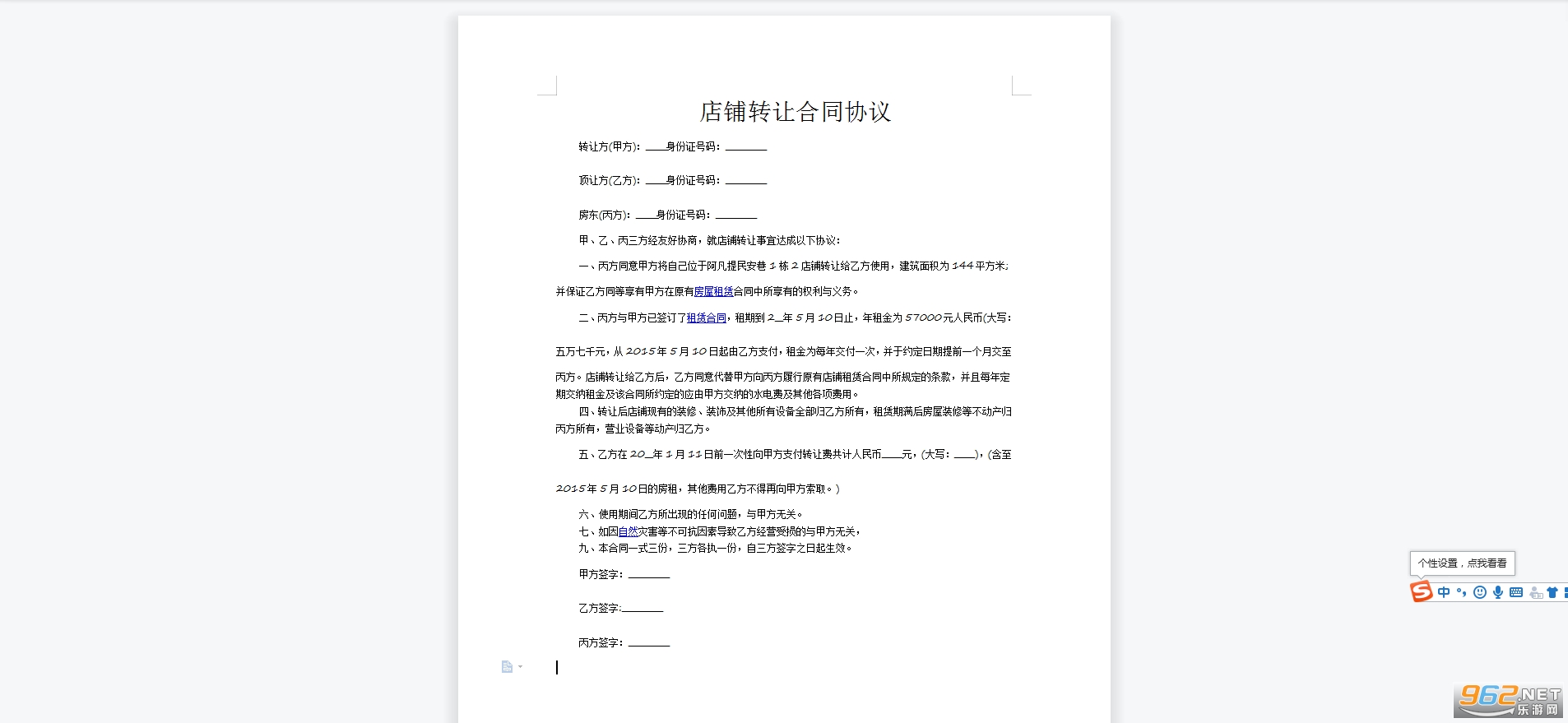 《店铺转让合同协议》是一份在日常商业经营中用的比较多的合同协议,从事个体经营的朋友可能会用得到,想要转让店铺的小伙伴一定会用得到,小编为大家整理了店铺转让合同协议简单的模板,大家可以参考,根据自身的实际情况,进行相应的修改,需要就来这里吧!