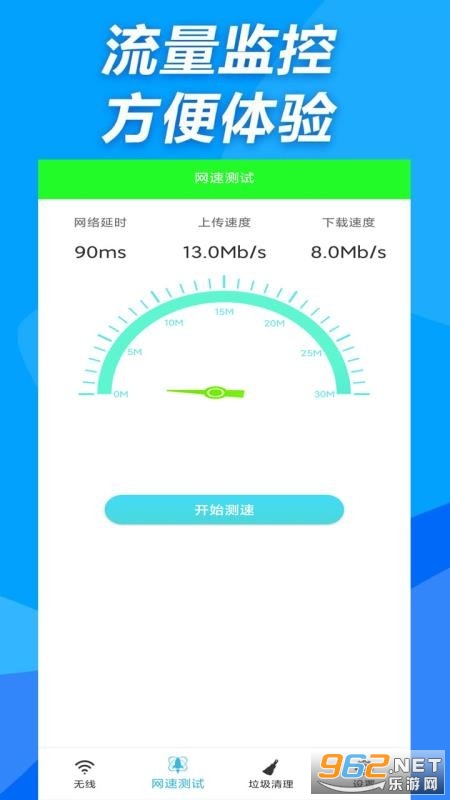 【网速测试服务】为您的手机测试网络速度,包含:网络延时、上传速度、下载速度,让您随时了解手机情况。