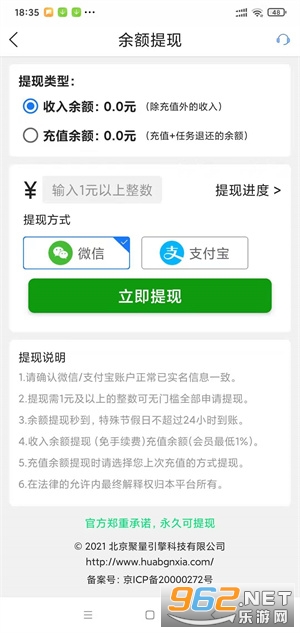 3、互帮侠满1元及以上的整数可无门槛全部申请提现,余额提现秒到,特殊节假日不 超过24小时到账