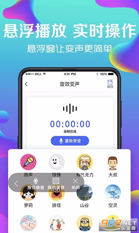 1、使用apop提供的变声类型以后,用户就可以录制有趣的语音