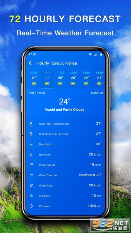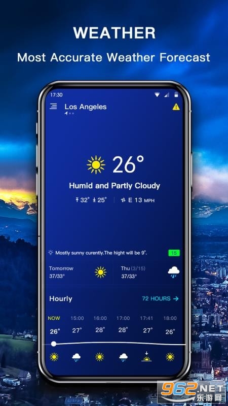 天气预报中有很多信息,包括天气状况,气压,相对湿度,能见度距离,降水概率,露点,风速和风向,以及十天未来预报,和每小时天气预报!
