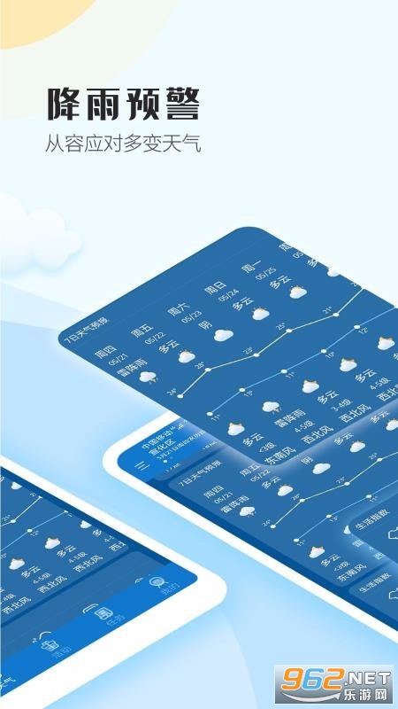 《天天气象app》是一款非常好用的手机天气预报软件,系统会根据天气的降水情况,实时将信息进行反馈,及时对用户进行提醒,让用户出行做好防预措施,而且不需要任何费用,操作也方便,安装也轻松,感兴趣的朋友还在等什么?欢迎来962下载试试吧!