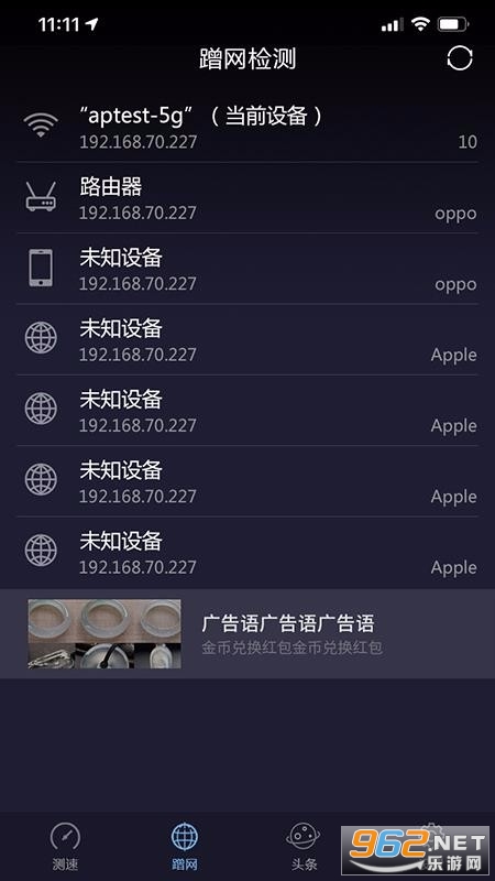 《网络测速专业版app》是一款非常给力的专业的手机测速软件,这款软件可以轻松测试当前网络质量,一键对手机进行加速效果,将手机中的垃圾文件进行清除,还能轻松蹭网,而且不需要任何费用,感兴趣的朋友还在等什么?欢迎来962下载体验试试吧!