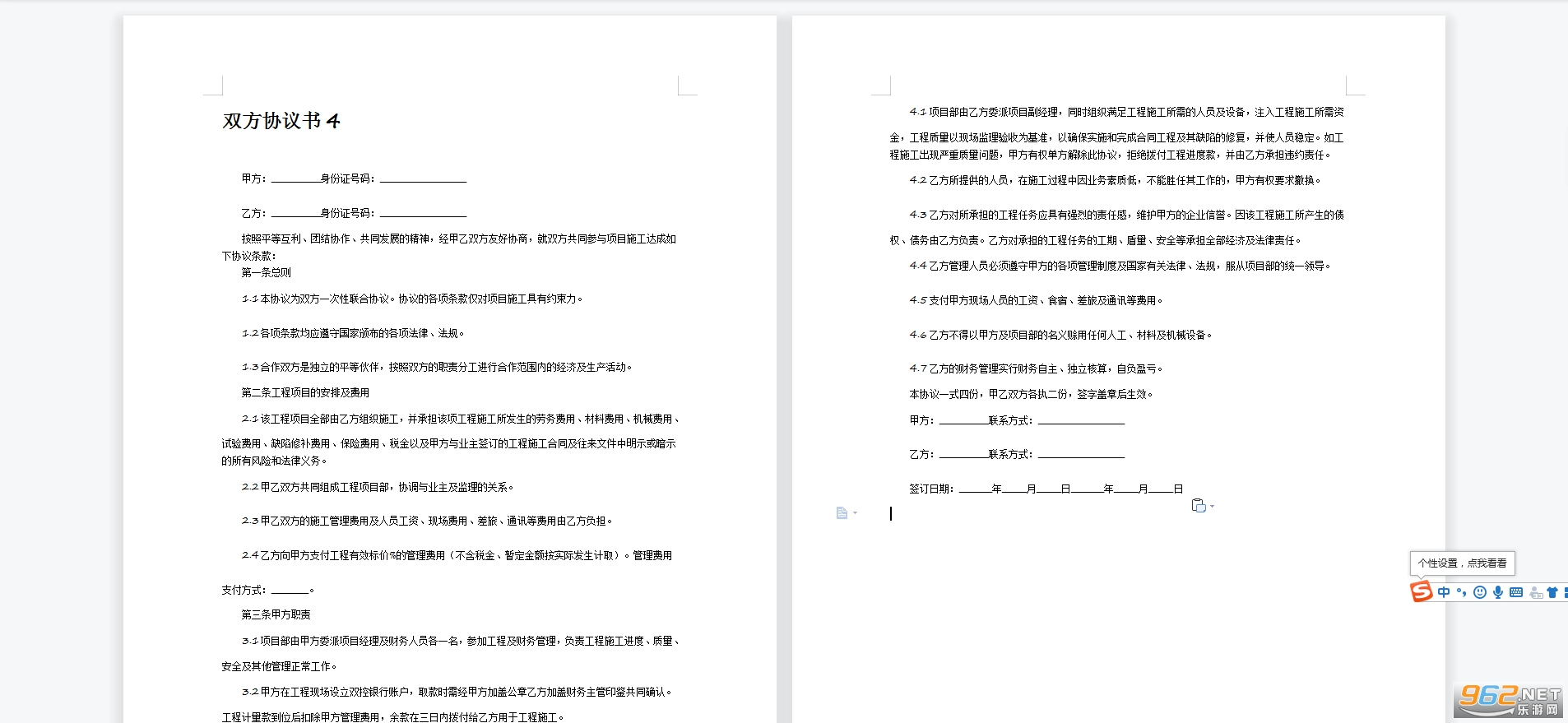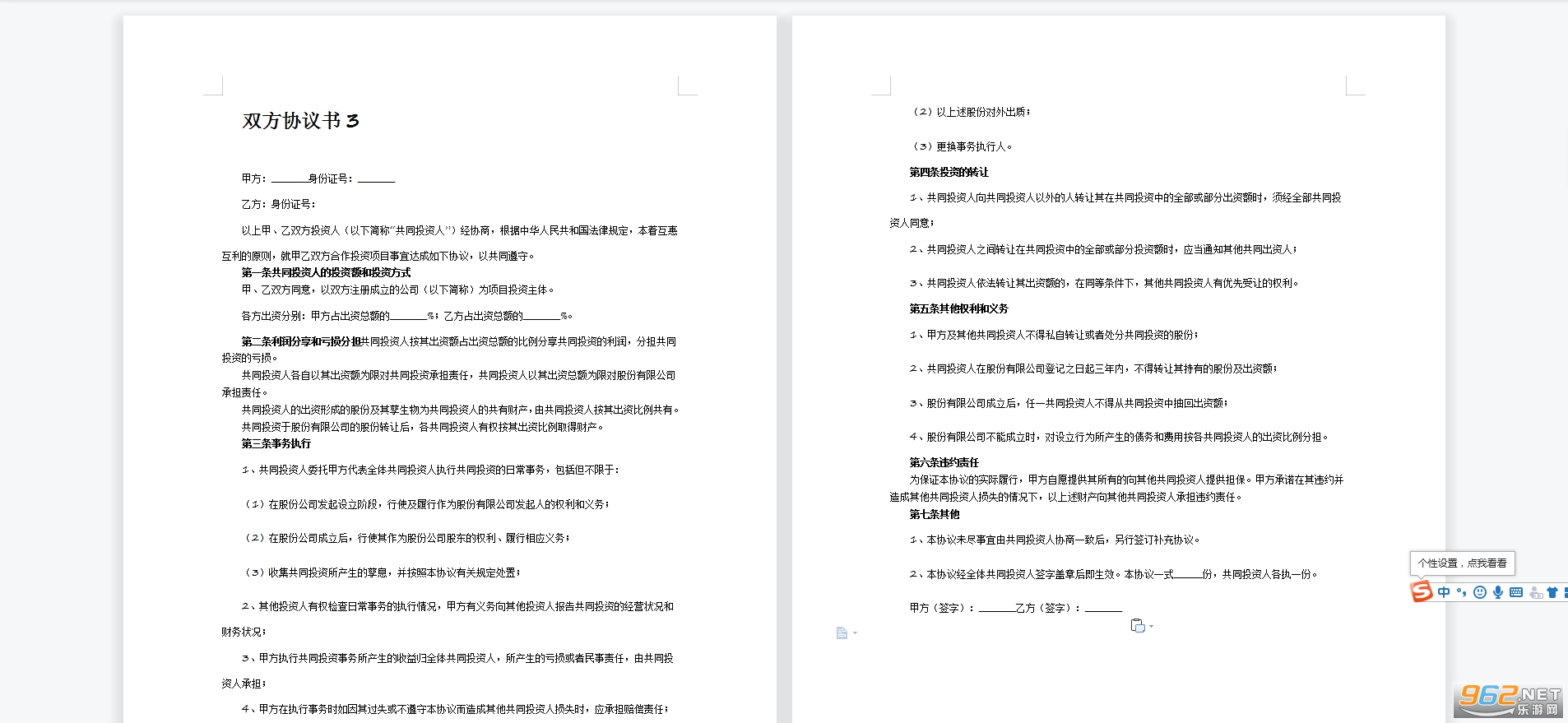 《合同书样本》是一分为需要拟定合同的小伙伴提供的免费合同书模板,里面有十份不同类型的关于甲乙双方简单的协议书合同样本,用户可以根据自己的实际情况,自由的选择你需要的合同书样本,直接套用,超级方便,需要拟定简单的甲乙双方合同的朋友可以借鉴一下哦!