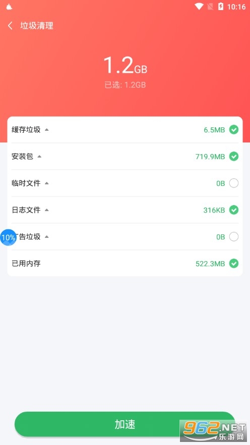 1、快速智能检查手机垃圾文件,一键解决发现的所有垃圾,使手机快速恢复到健康状态。